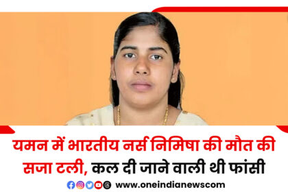 यमन में भारतीय नर्स निमिषा की मौत की सजा टली, कल दी जाने वाली थी फांसी