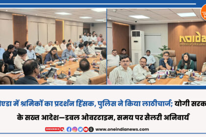नोएडा में श्रमिकों का प्रदर्शन हिंसक, पुलिस ने किया लाठीचार्ज; योगी सरकार के सख्त आदेश—डबल ओवरटाइम, समय पर सैलरी अनिवार्य
