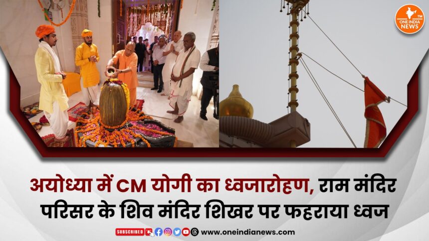 श्रीराम जन्मभूमि मंदिर के परकोटे में स्थित भगवान शिव के मंदिर के शिखर पर उत्तर प्रदेश मुख्यमंत्री योगी आदित्यनाथ जी ने विधि विधान से पूजन के साथ ध्वजारोहण किया।